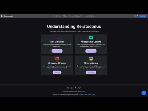 Experience keratoconus vision with the new Keratoconus Camera PWA. A safe, private, and interactive tool to raise awareness and help friends understand your vision.